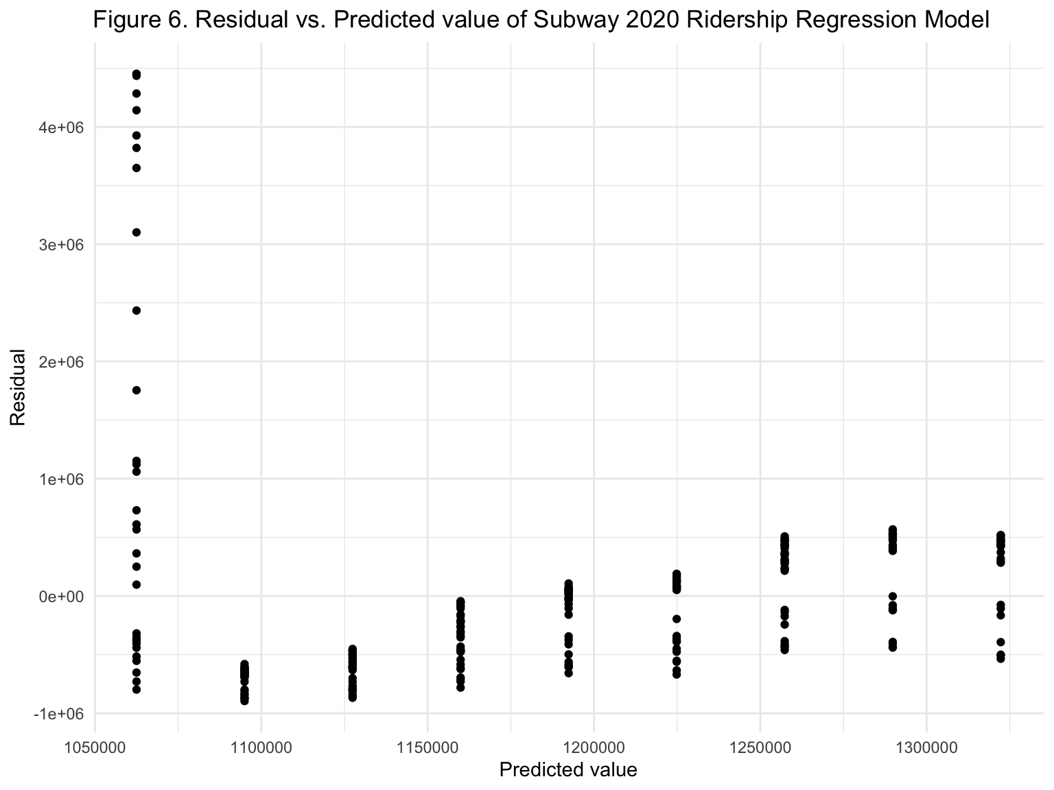 ggtitle("Figure 6. Residual vs. Predicted value of Subway 2020 Ridership Regression Model")