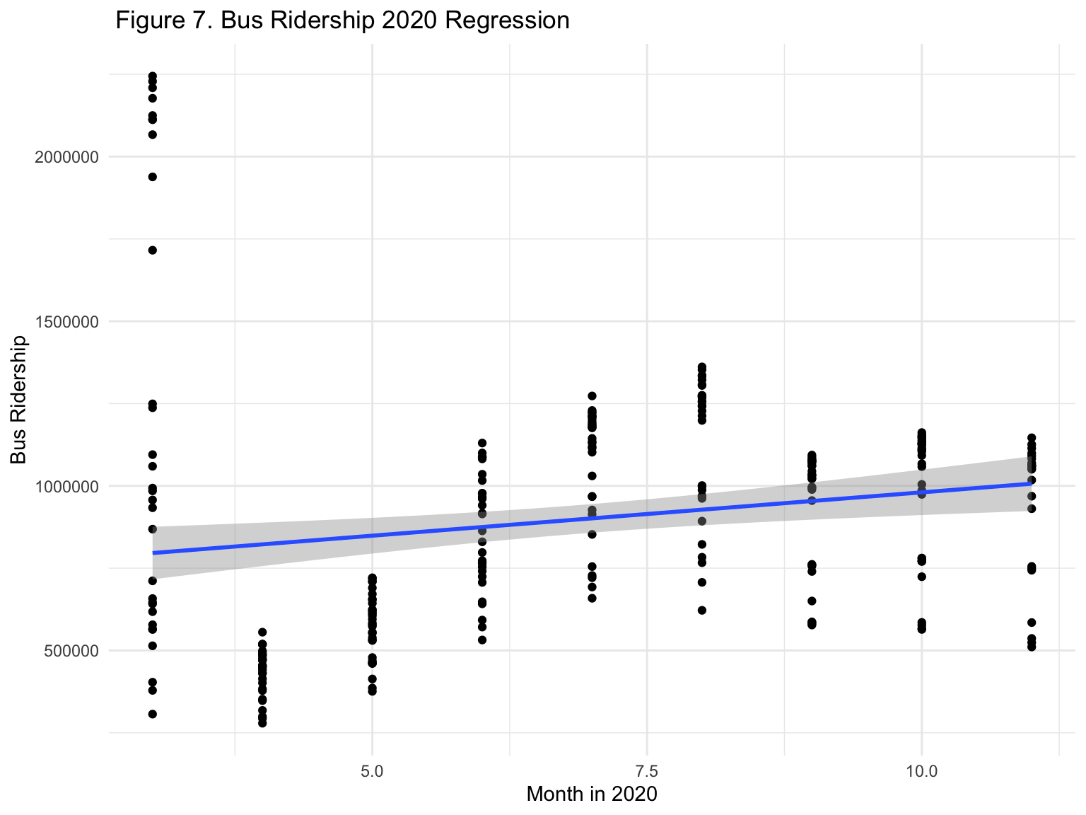 ggtitle(" Figure 7. Bus Ridership 2020 Regression")